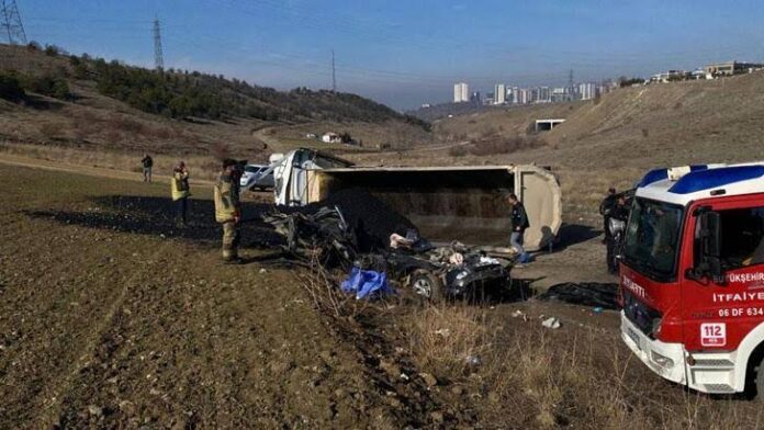 Ankara’da, Büyükşehir Belediyesi’ne ait zift yüklü kamyon, Mamak Belediyesi’ne ait kamyonete çarparak devrildi. Kazada, kamyonette bulunan 3 belediye personeli hayatını kaybetti.