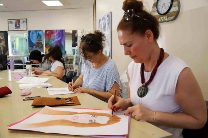 “Önce korkarak başladım ama sonra çok güzel resimler çizmeye başladım”Kursa korkarak başladığını söyleyen ama zamanla sevdiğini belirten 56 yaşındaki Jülide Rumevleklioğlu, “Ben bu kursa korkarak başladım. Kapıdan hep bakıyordum ve güzel resimler görüyordum. Fakat kendime bu konuda hiç güvenmiyordum. Korkularımı burada hocamız sayesinde yendim. Hiçbir şekilde resim çizme alt yapım yoktu. Çizebileceğim tek şey çöp adamdı. Fakat burada teknikleri öğrenmeye başladıkça kendime olan güvenim arttı. Şu an profesyonel bir şekilde resim çizdiğim için çok mutluyum. Önceden sadece görüyordum. Bu kurs sayesinde bakmayı öğrendim. Ben resim çizmeyi ilerletmeyi düşünüyorum. Resimle huzur buluyorum. Çizdiğim tabloları ileride satmayı düşünüyorum” dedi.”Resim yapmak için özel yeteneğe gerek yok”Resim yapmak için özel yeteneğe gerek olmadığını söyleyen Resim Öğretmeni Fatma Özkaya ise, “Bu kursta sadece resim çizmeyi öğretmiyorum. Resim öğretmekten ziyade insanların hayatına dokunmayı hedefliyorum. Kendilerini ifade edebilme ve onlar için terapi. Resim yapmak için özel yeteneğe gerek yok. Sıfırdan başlayıp kendi yeteneklerini keşfetmelerini sağlamaya çalışıyoruz. Amacımız farkındalık oluşturmak ve insanların kendine güvenmelerini sağlamak” diye konuştu.