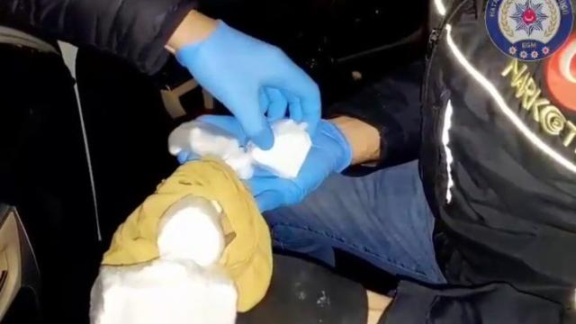 Araçta yapılan aramada 512 gram kokain ele geçirildi.