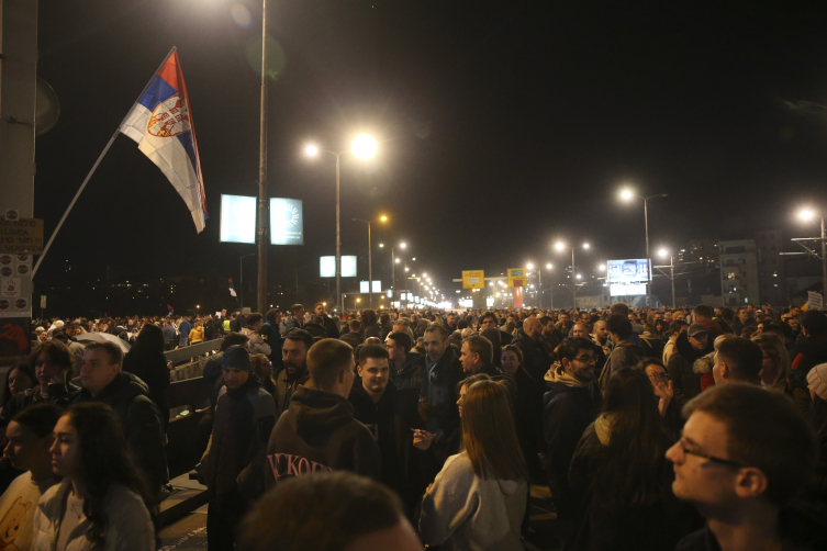 Novi Sad’daki tren istasyonunda 1 Kasım 2024’te beton sundurmanın çökmesi sonucu 15 kişinin hayatını kaybettiği kazanın ardından hükümete tepki gösteren binlerce üniversite, yüksekokul ve lise öğrencisi başkentteki trafik akışının “kilit” noktalarından biri olan “Autokomanda” mevkisindeki eylemini gecenin geç saatlerinde sürdürüyor.